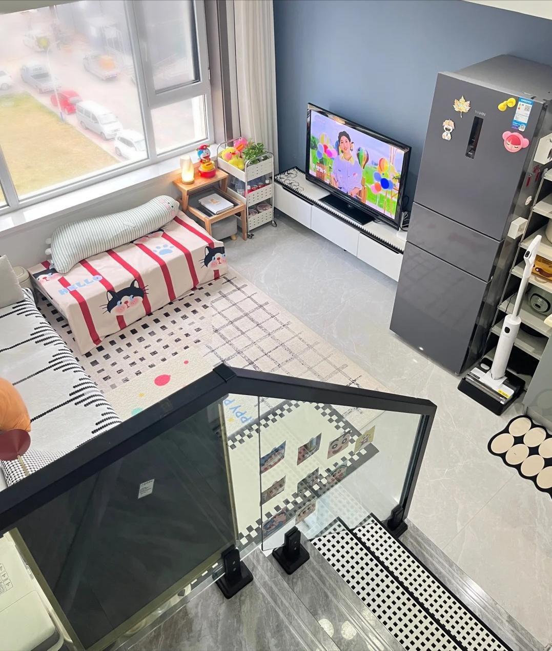 看到这里,想必有些读者已经明白了,为何这么小的空间却能容纳如此多的功能区。原因其实很简单,这个小屋虽然套内面积不大,但层高相对较高。通过将垂直空间一分为二,便能巧妙地多出一倍的使用面积。