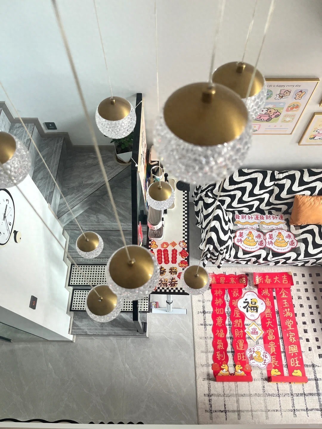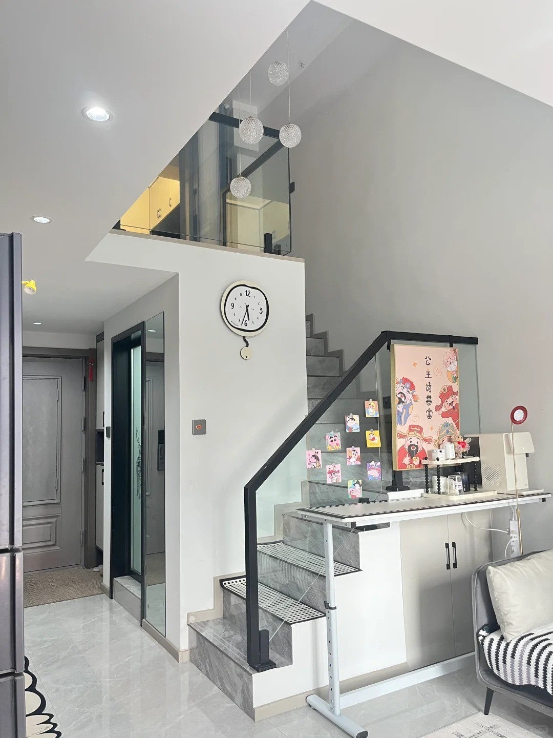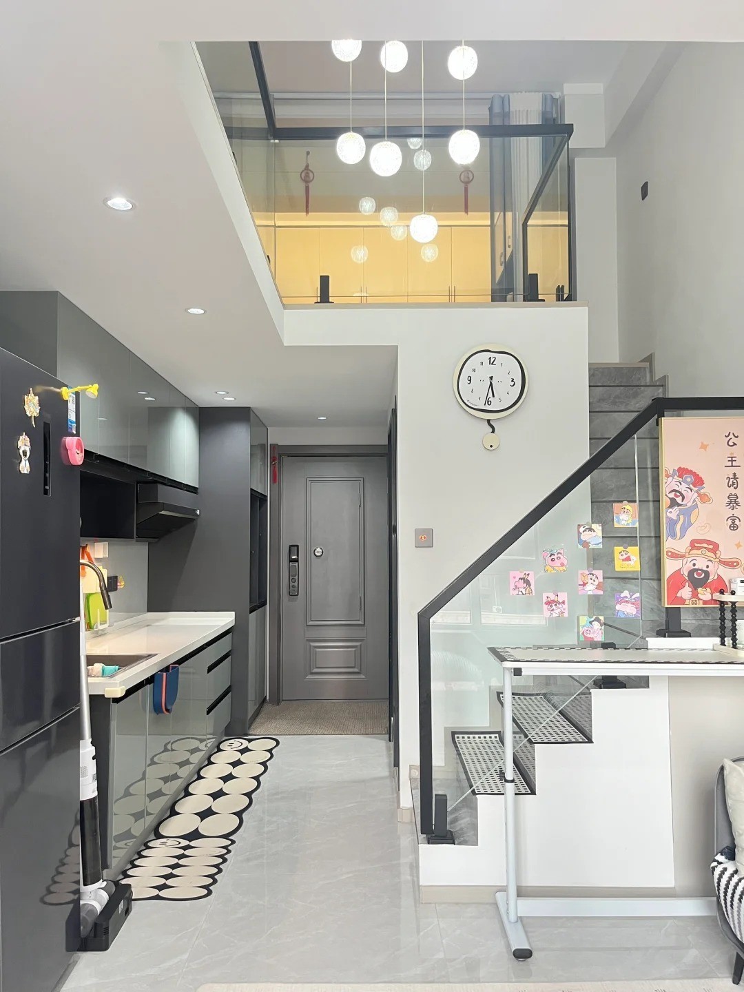 大门以及侧墙都没有摆放任何置物架,所以物品都被巧妙地“藏”了起来。回到家中,映入眼帘的都是干净、整洁的景象,再加上一些喜庆装饰物的点缀,让人瞬间消除了不少疲惫感。
